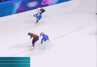 原本在后面的加拿大和比利时选手,顺利超越前面的人。