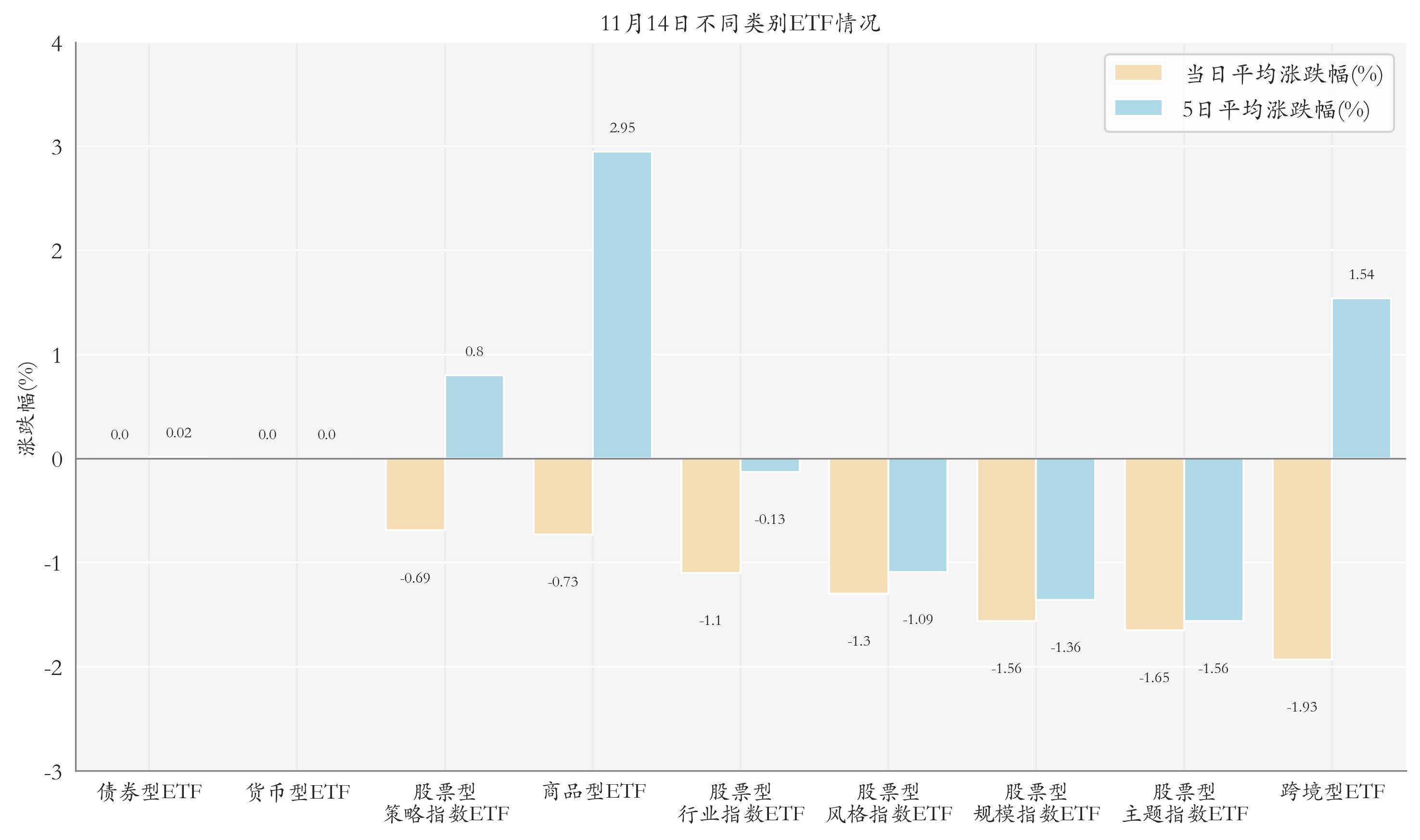 根据ETF基金的规模和涨跌幅计算得出不同分类情况下各类ETF基金的平均涨跌幅。